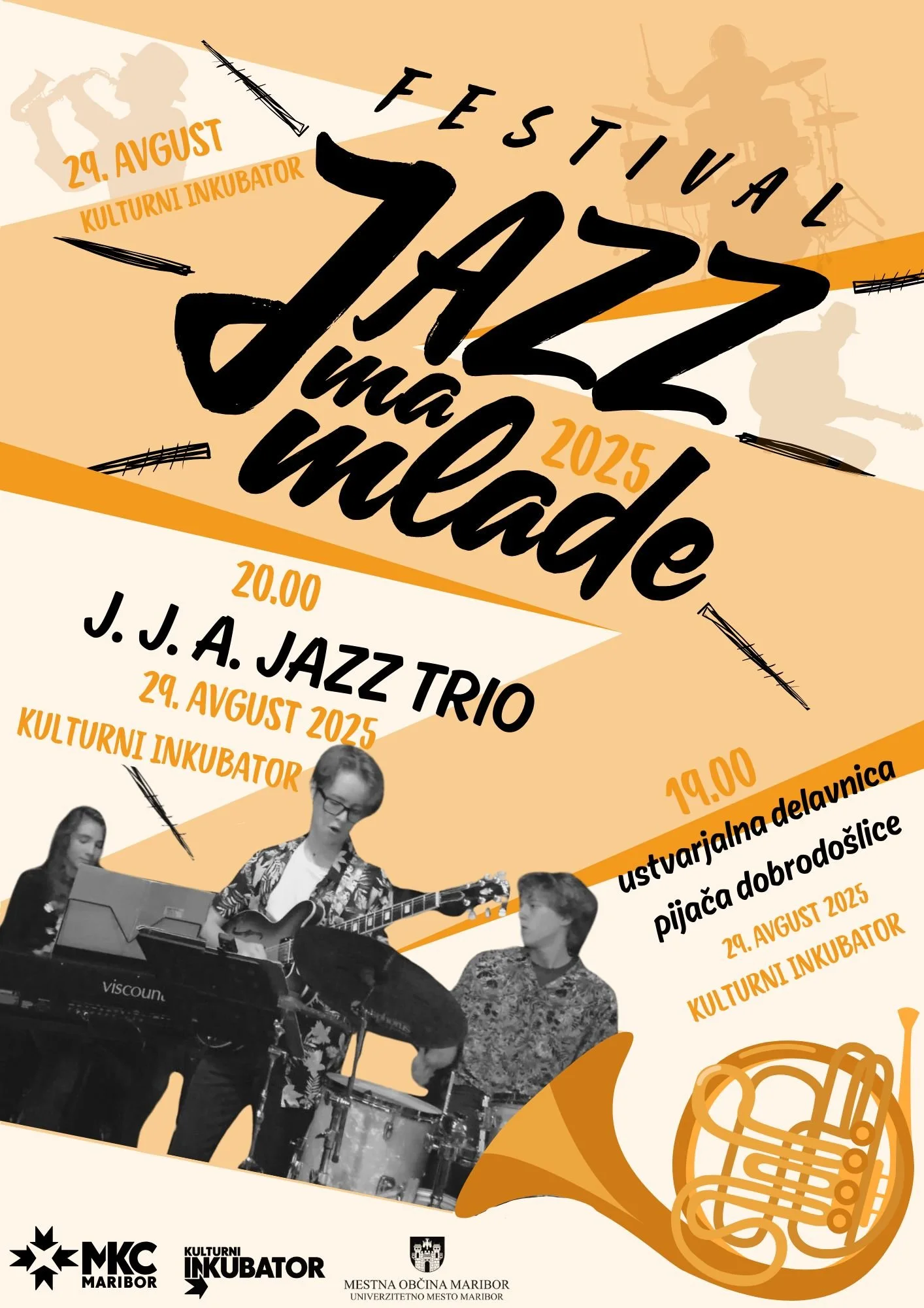 V petek, 29. avgusta 2025 se v Kulturni inkubator vrača festival Jazz ‘ma mlade 2025, ki ga organizira Mladinski kulturni center Maribor. Na tretjem koncertnem večeru v letu 2025 bo nastopila mlada zasedba J. J. A. JAZZ TRIO.