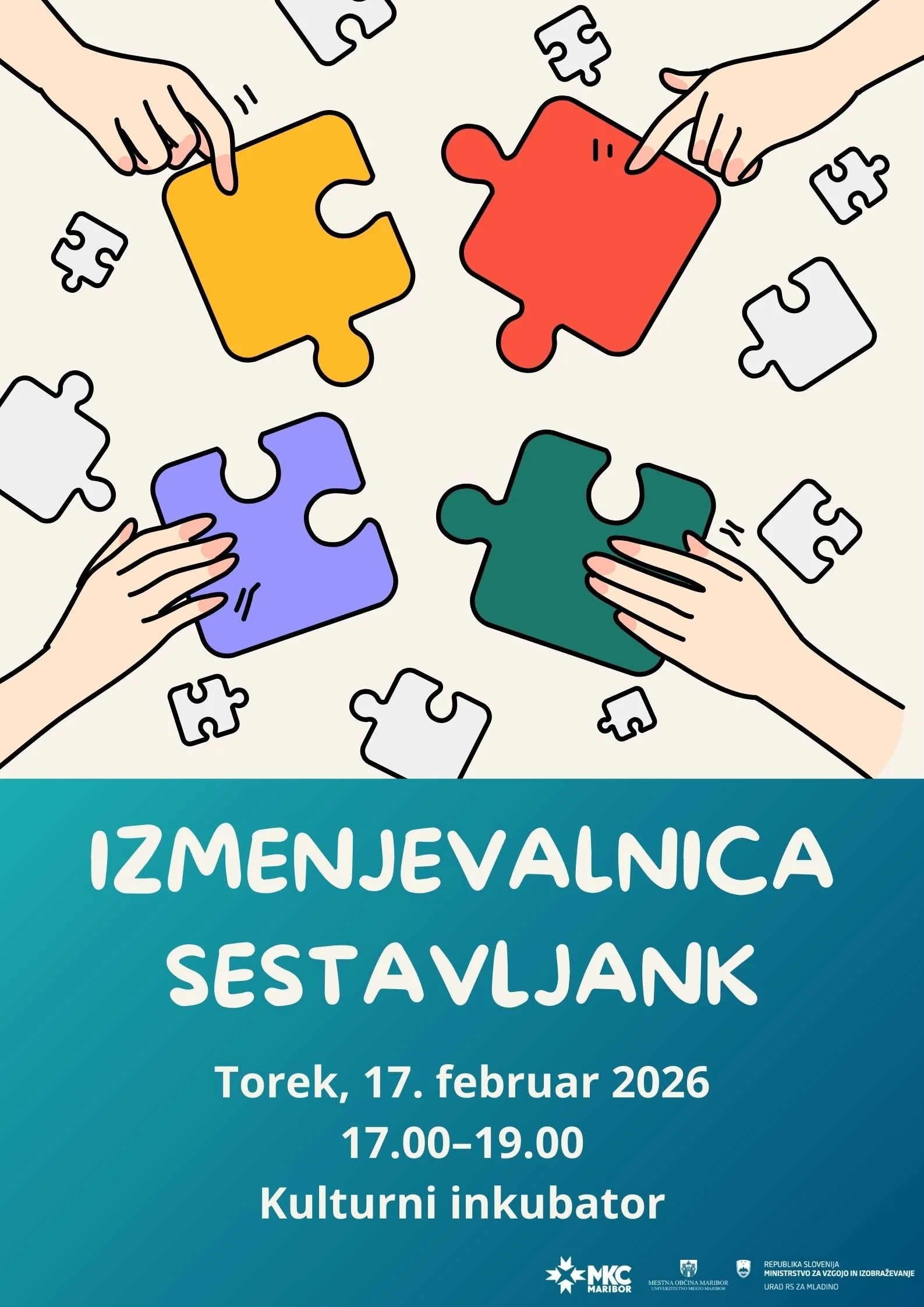 Imaš doma sestavljanko, ki si jo že stokrat dokončal_a? Ali pa takšno, ki že mesece stoji na polici in čaka na boljše čase? Super! Prinesi jo s seboj na Izmenjevalnico sestavljank v Kulturni inkubator in jo zamenjaj za novo! Sestavljanje, izmenjava in druženje bo v torek, 17. februarja 2026, ob 17. uri.