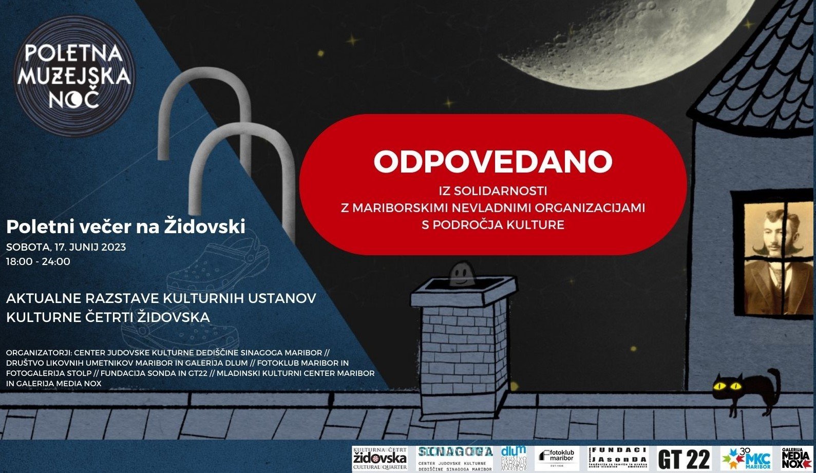 Kulturne ustanove na območju Židovske ulice – GT22 , Center judovske kulturne dediščine Sinagoga Maribor , Fotoklub Maribor in Fotogalerija Stolp , Društvo likovnih umetnikov Maribor in Galerija DLUM ter Mladinski kulturni center Maribor in Galerija Media Nox –, povezane v iniciativo Kulturna četrt Židovska, smo vas želele v sklopu vseslovenske Poletne muzejske noči povabiti na »najlepši balkon našega mesta«.