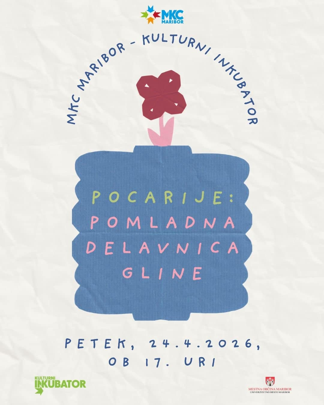 V petek, 24. aprila 2026, bo v Kulturnem inkubatorju prva delavnica v sklopu ustvarjalne serije Pocarije. Tokrat bomo ustvarjali z glino. Zaradi zagotovitve materiala so obvezne predhodne prijave.