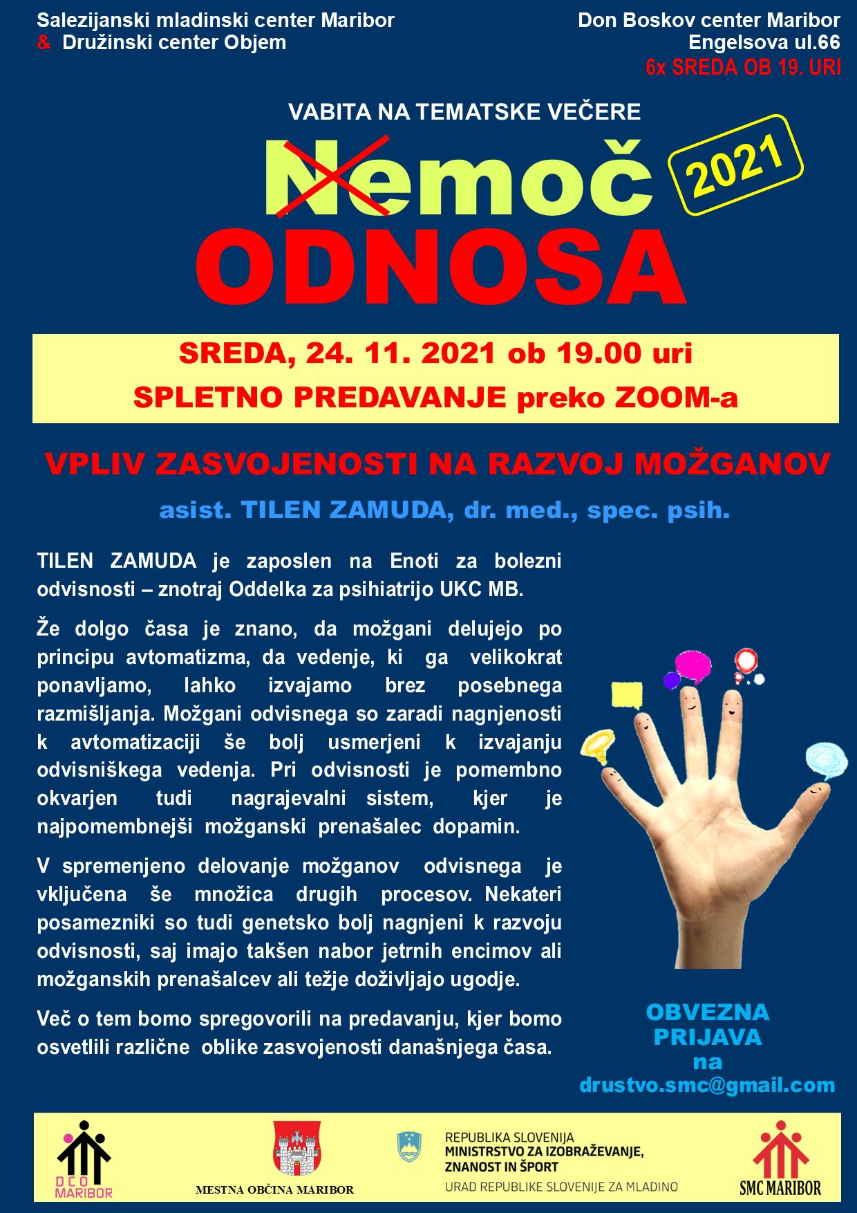 Vabimo vas na zadnji tematski večer v tem letu “NEMOČ ODNOSA”, ki nosi naslov: Vpliv zasvojenosti na razvoj možganov.