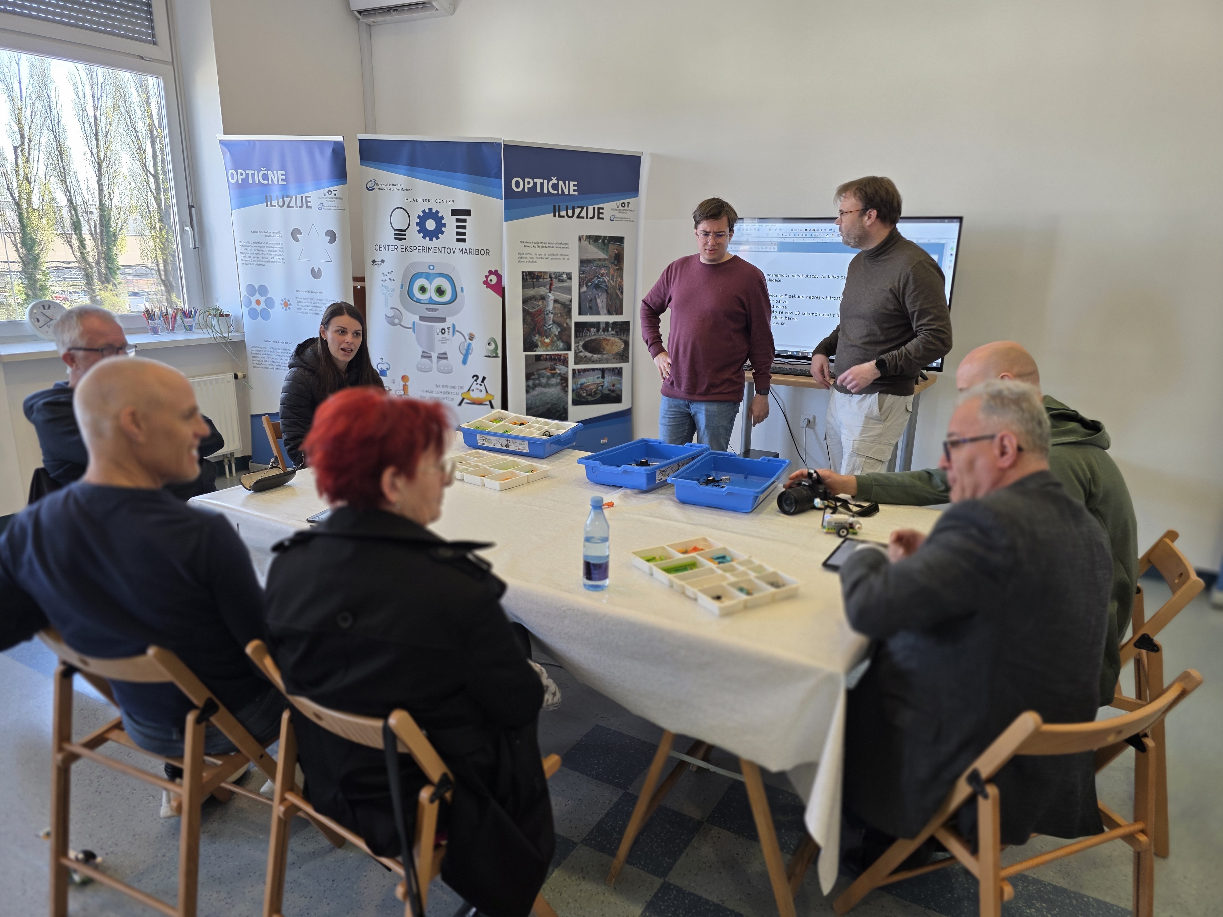 Med 10. in 13. uro so udeleženci sodelovali v vključujoči delavnici robotike in eksperimentiranja, kjer so skozi praktično delo spoznavali osnove programiranja z LEGO roboti ter preizkušali različne naravoslovne eksperimente. Aktivnosti so bile zasnovane tako, da so omogočale sodelovanje vsem, ne glede na predznanje, hkrati pa spodbujale radovednost, ustvarjalnost in medsebojno pomoč.