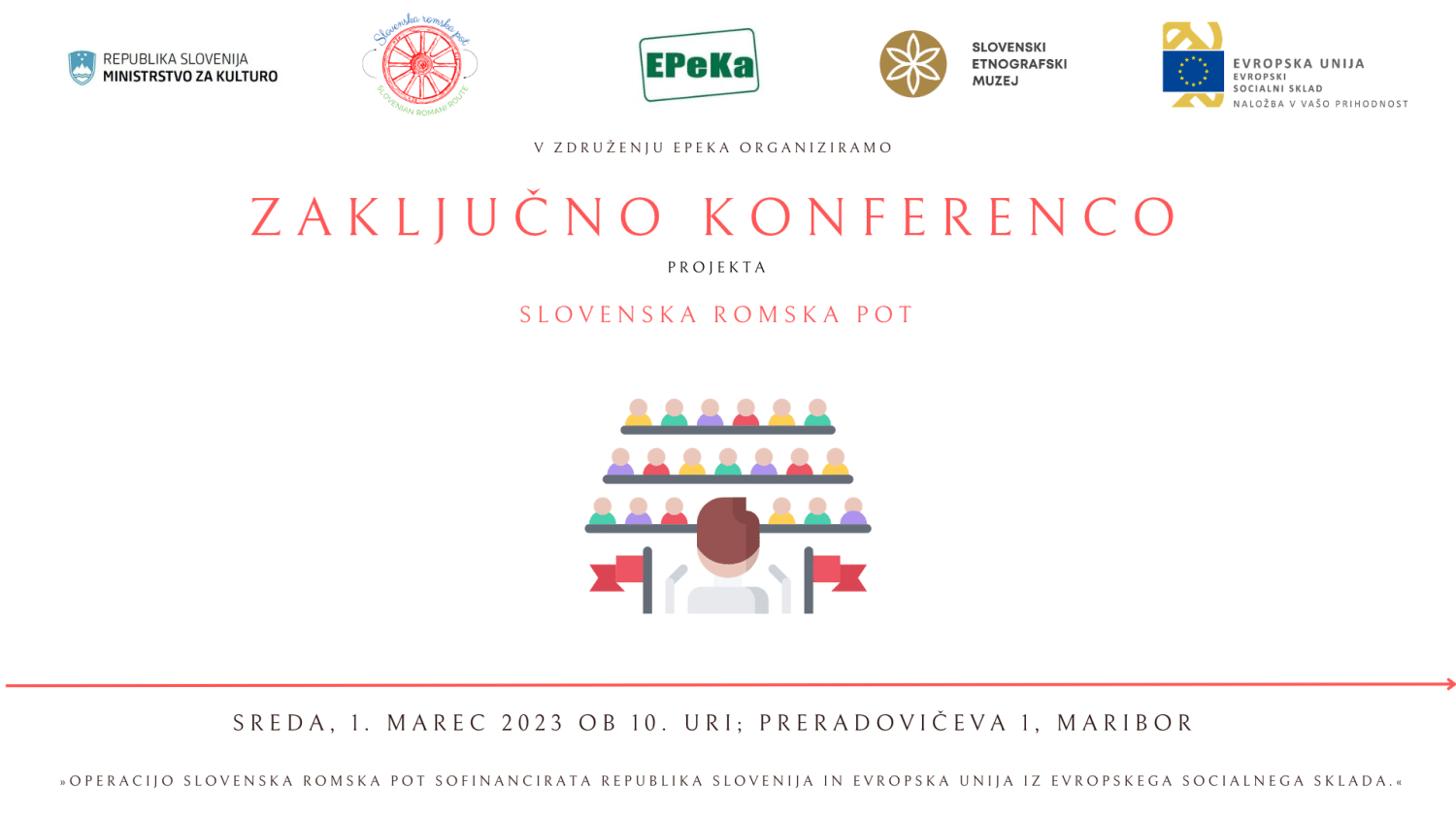 V Združenju EPEKA, so.p. zaključujemo z izvajanjem projekta Slovenska romska pot, ki ga med med 1. oktobrom 2021 in 1. marcem 2023 izvajamo znotraj Vzhodne kohezijske regije. Ob tej priložnosti vas vljudno vabimo na sklepni dogodek, ki bo izveden v sredo, 1. marca ob 10. uri.